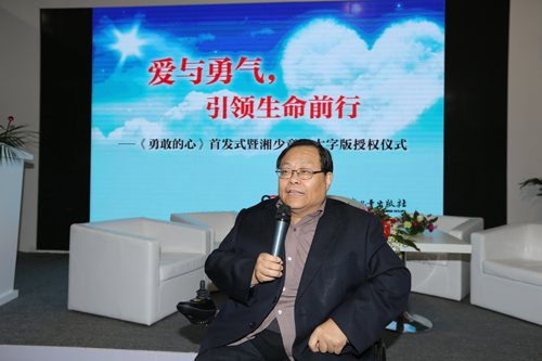 盲文社社長(zhǎng)張偉則表示,《勇敢的心》是一部非常美的書(shū),不僅內(nèi)容溫馨感人,更傳遞了溫暖和正能量。他提到,當(dāng)前盲人文化產(chǎn)品的生產(chǎn)還很難滿足需求,與湖南少兒出版社合作推出大字版和有聲讀物,可以為視力殘疾的孩子提供優(yōu)質(zhì)的閱讀資源。他認(rèn)為這樣的合作是充滿了善意、愛(ài)心和溫情的。他還對(duì)我社給予的支持表示感謝。